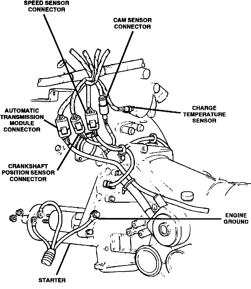 The Vehicle Speed Sensor Connector lead breaks out of the engine wiring harness, at rear of the engine near the left cylinder head.