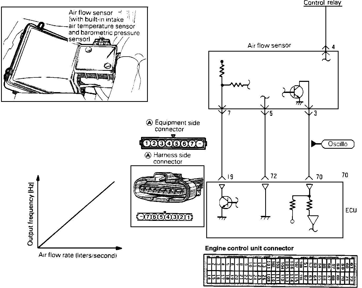 The Air Flow Sensor (AFS) measures the amount of air entering the intake manifold to provide the ECU with precise intake volume information. The AFS is a "Karman Vortex" type which measures the intake air volume.