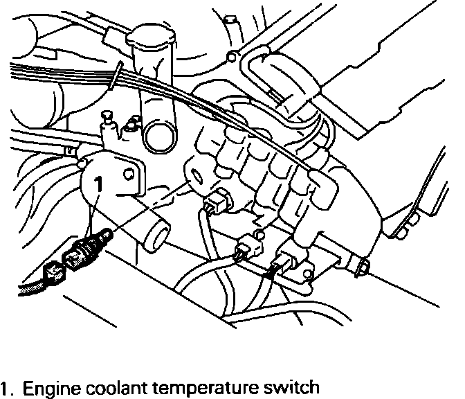 Engine coolant temperature switch, located in the thermostat housing at the rear of the engine.