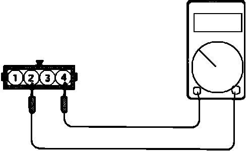 3. Connect a pointer-type ohmmeter between terminal # 2 and terminal # 4.