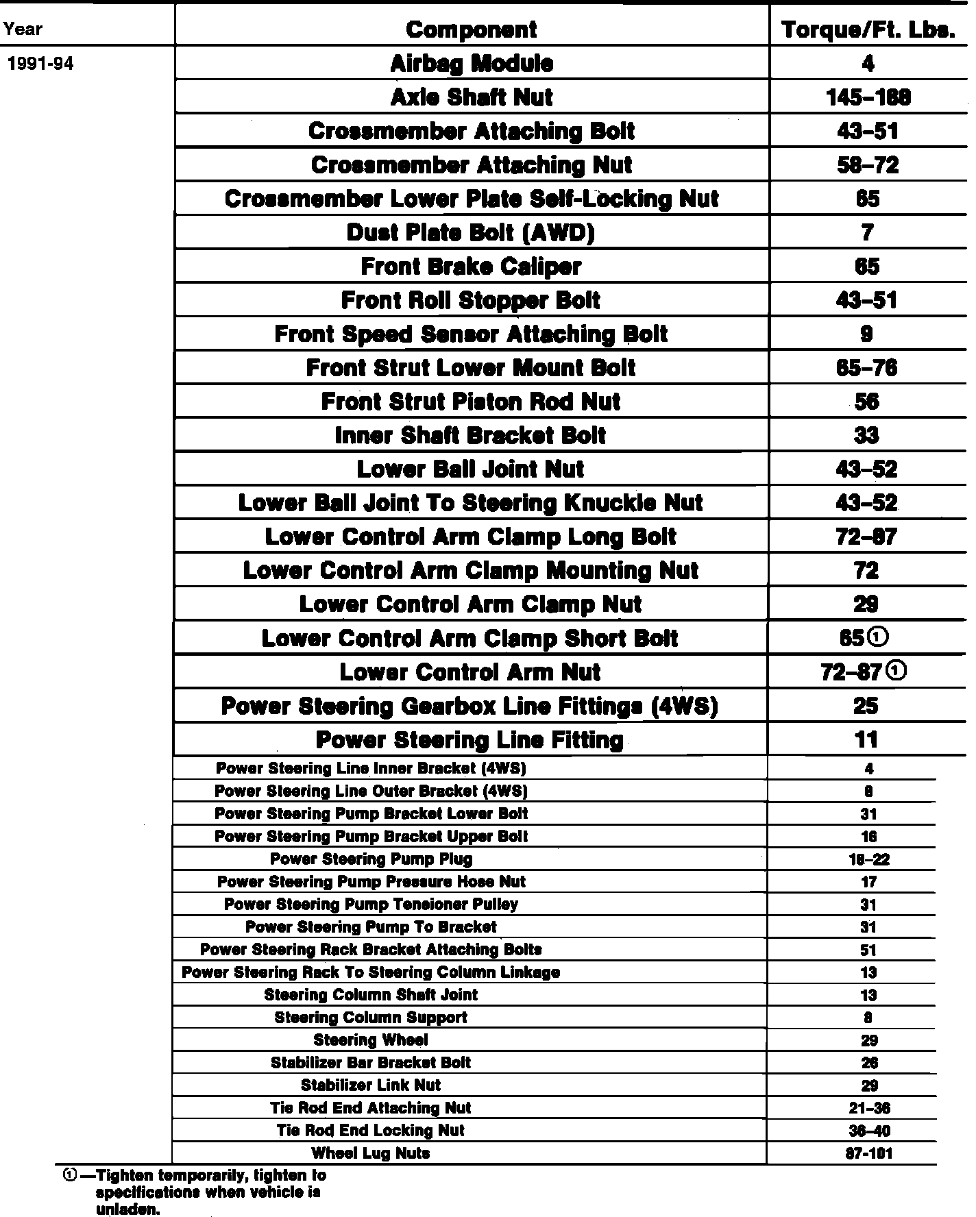 Tightening Specifications: