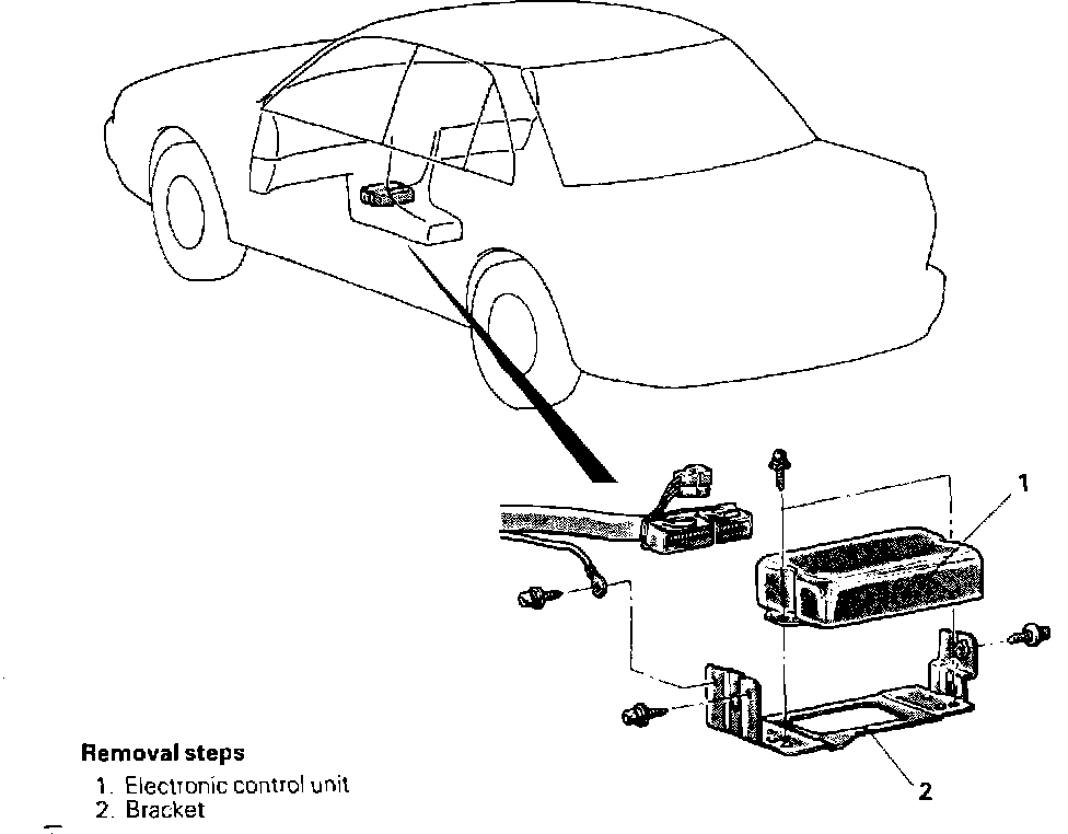 Replace the ABS ECU in numbered sequence shown, by removing the unit from the bottom of the center console.