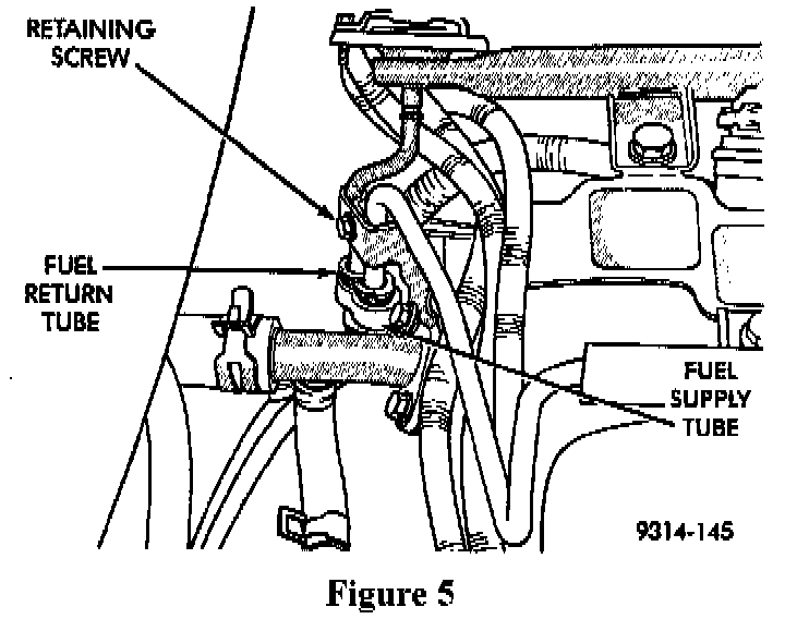 21. Remove the screw from the fuel tube bracket and separate the fuel tubes from the bracket (Figure 5). Remove and discard the bracket.