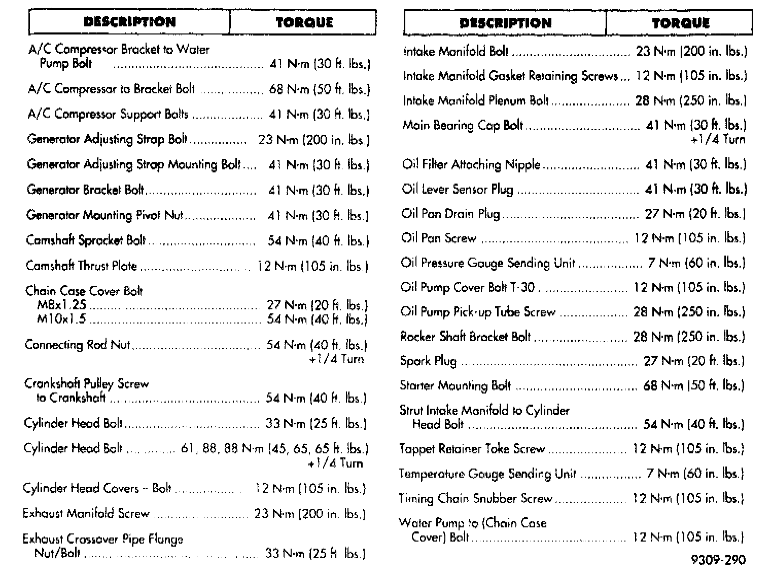 Tightening Specifications