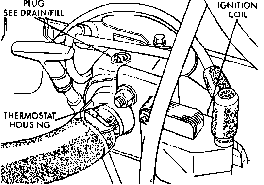 1. Drain coolant from cylinder block by removing drain plug, located behind and below exhaust manifold.