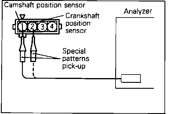 1. Connect test leads from the oscilloscope to the #2 terminal of the ECM connector and run the engine at idle speed.