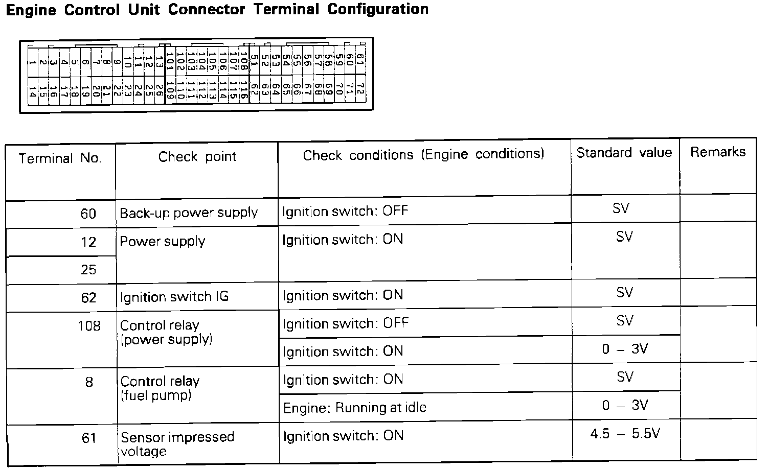 If voltage measured differs from that listed on the chart, check the corresponding sensor, actuator, or related electrical circuit. After repairs have been completed, recheck voltmeter readings to confirm that the repair has corrected the problem.