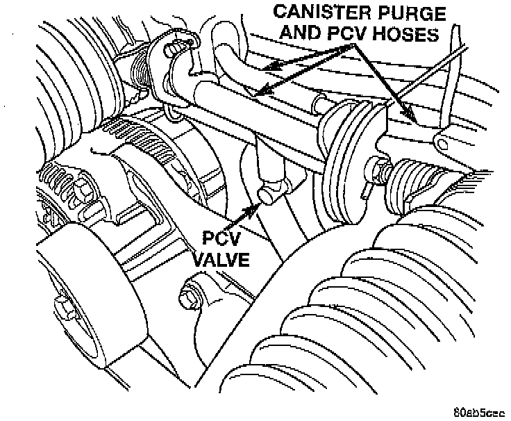 5. Disconnect PCV and canister purge hose harness bundle. Disconnect Throttle Position Sensor (TPS) wiring connectors from intake manifold.