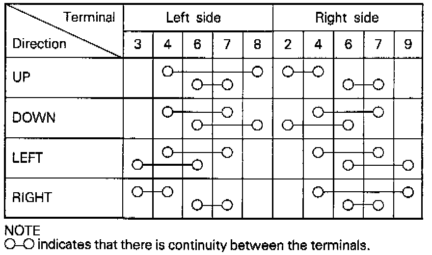 Operate switch and check for continuity between terminals as indicated in the chart below.