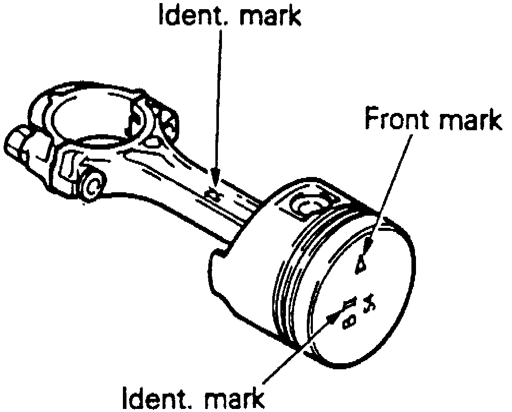 Piston and rod is assembled with indented arrow on piston and embossed numeral on rod facing front of engine,