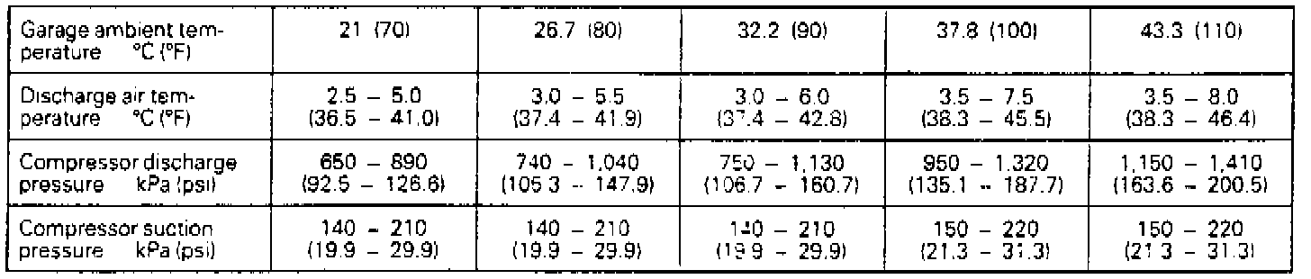 6. Note the discharge temperature and compare with charts shown. Reading should be taken with compressor clutch engaged.