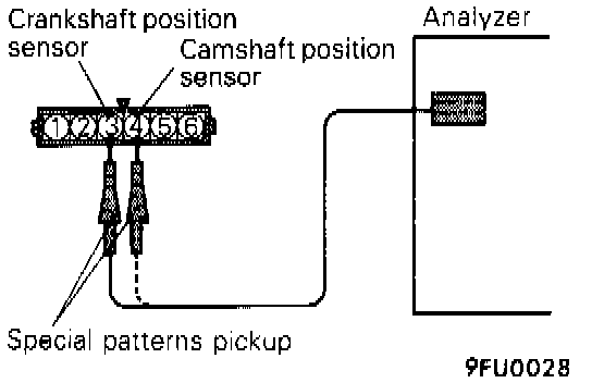 1. Connect the analyzer special patterns pickup to ECM terminal 68. (When inspecting the camshaft position sensor signal wave pattern.)