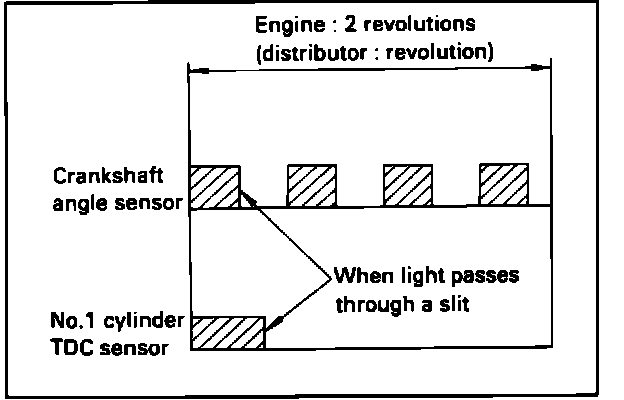 The Control Unit is able to detect number one cylinder TDC by the signal generated through the single inner slit on the disc. The sequence of the fuel injector firing is based on this signal.