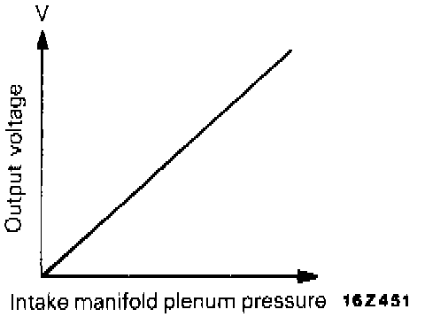The manifold absolute pressure sensor output voltage is proportioned to the intake manifold plenum pressure and sent to the engine control module.