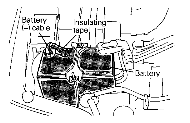 Disconnect the negative battery cable from the battery and tape the terminal.