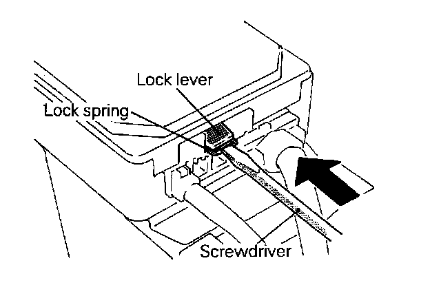 1. Apply a flat tip screwdriver to the lock spring (metallic portion) of the SDU connector lock lever as illustrated and push it horizontally toward the back of the unit.