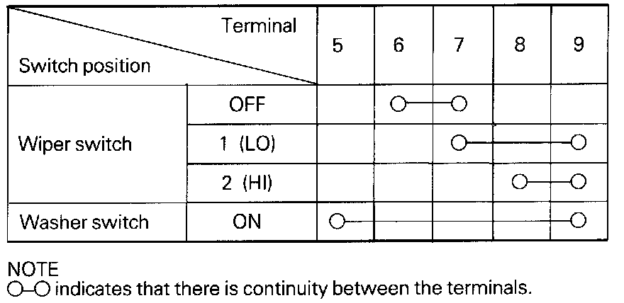 Wiper And Washer Switch Continuity Chart: