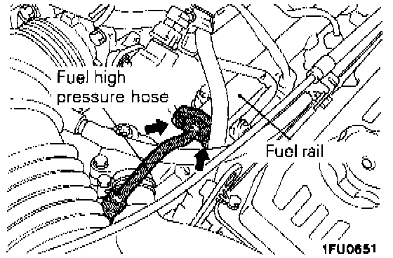 2. Disconnect the fuel high pressure hose at the fuel rail side.