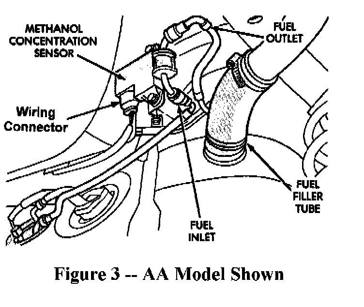 WARNING:Wear methanol resistant gloves, eye protection and avoid breathing fumes. Do not allow the methanol/gasoline mixture to contact skin. Service the vehicle in a well-ventilated area and avoid all ignition sources.