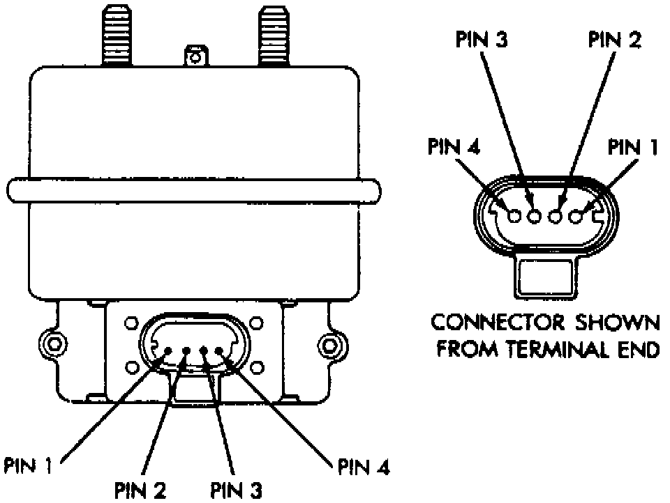7. Using suitable ohmmeter, connect negative lead to chassis ground and positive lead to pin 1 of 4-way connector.