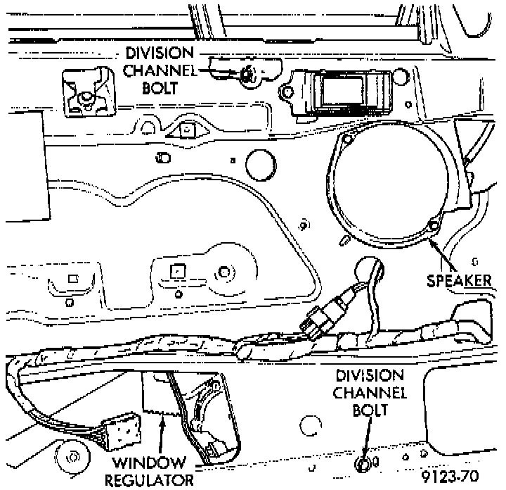 4. Push door glass forward to disengage window regulator roller from lift channel on glass.