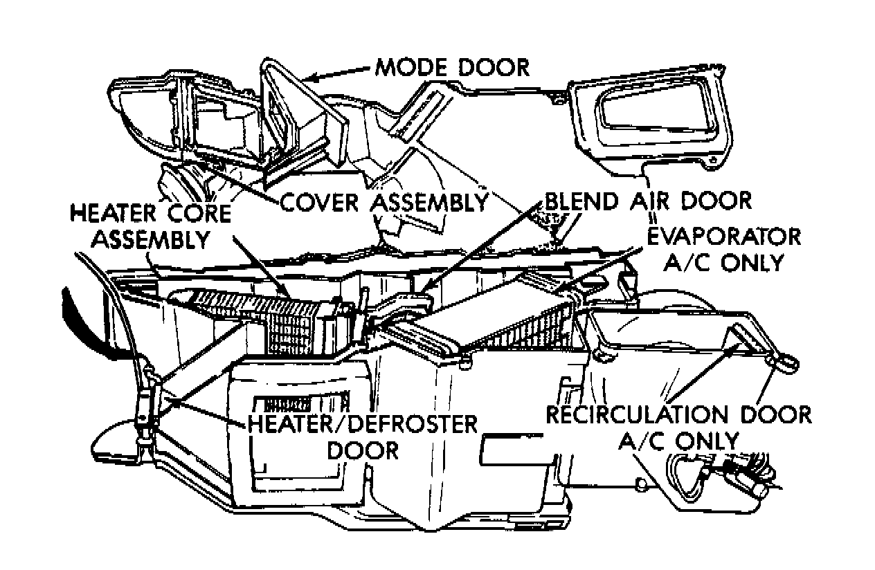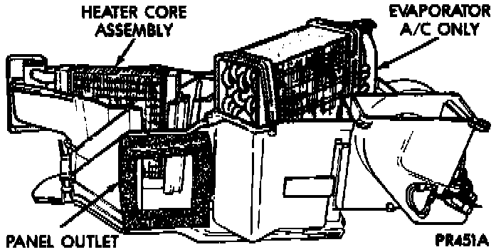 REMOVAL AND INSTALLATIONNOTE: The evaporator case (Heater-A/C housing) must be removed from the vehicle first. Service and Repair