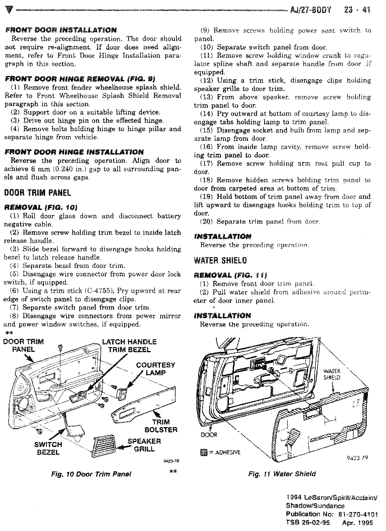 1994 LEBARON/SPIRIT/ACCLAIM/SHADOW/SUNDANCE - Publication Number 81-270-4101