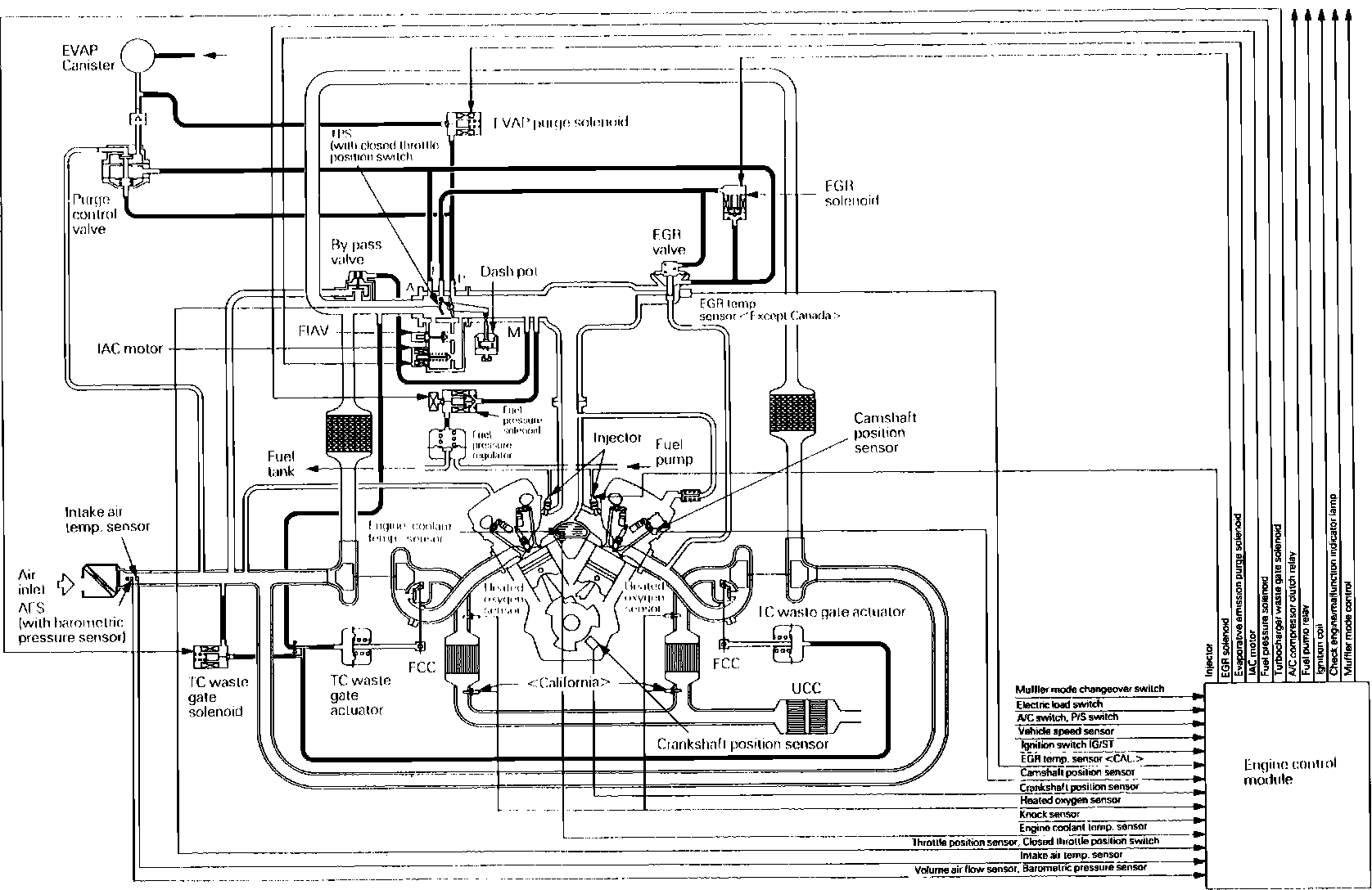 The Electronically Controlled Multipoint Injection system (ECI-MULTI)maintains emission levels and fuel economy within government agency standards, while optimizing driveability. The system consists of an electronic control module (ECM), control relay, wiring, sensors and actuators.