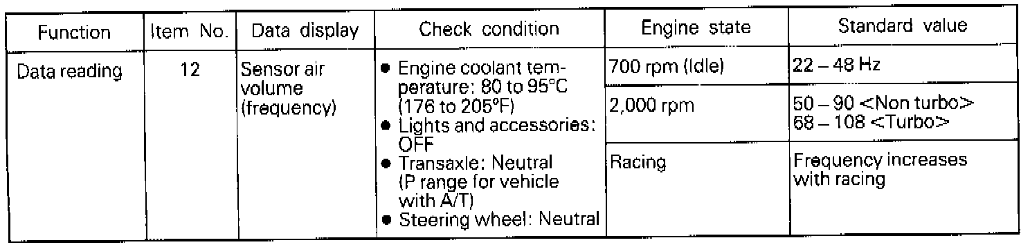 NOTE: When the vehicle is new [within initial operation of about 500 km (300 miles)], the volume air flow sensor output frequency may be about 10% higher.