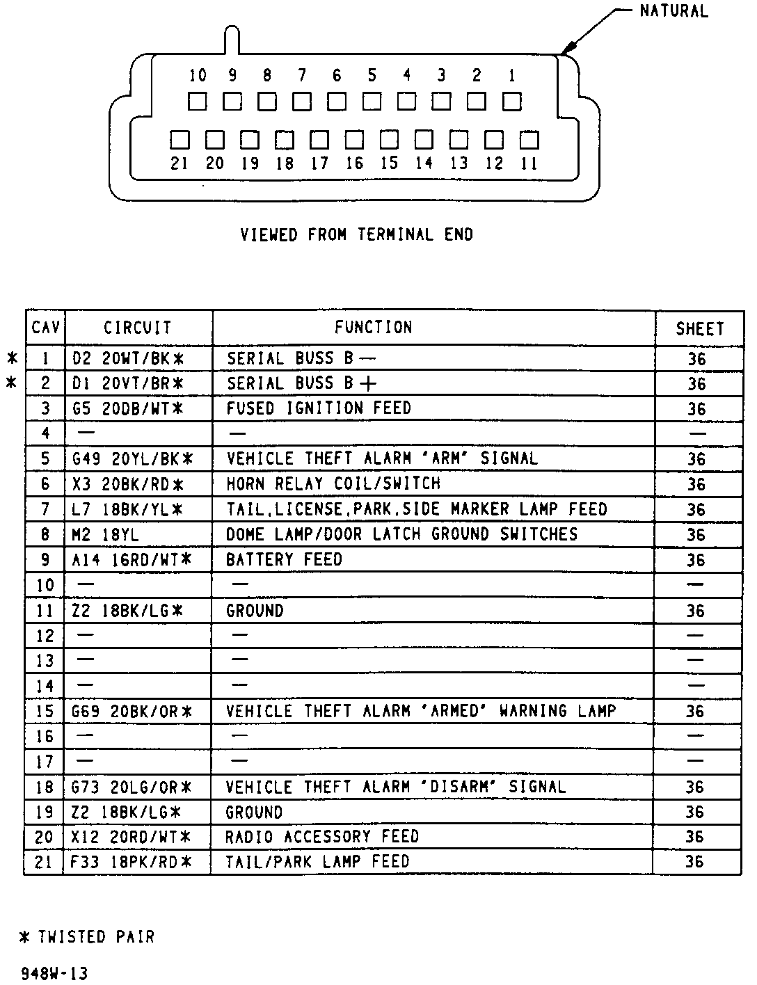 Vehicle Theft Security System Module Connector: