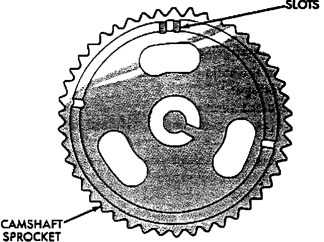 The camshaft position sensor generates a high/low voltage signal, as slots in the camshaft gear are detected. When a slot passes in front of the sensor, a 5 volt signal is sent to the PCM. When a slot is not present, the PCM receives a 0.3 volt signal.