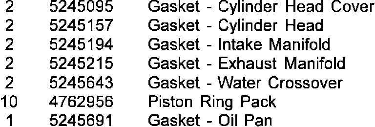 A new piston ring parts kit has been released to service the pistons/piston rings on the Viper V10 engine When replacing the pistons or rings on this engine use Package 4761938.