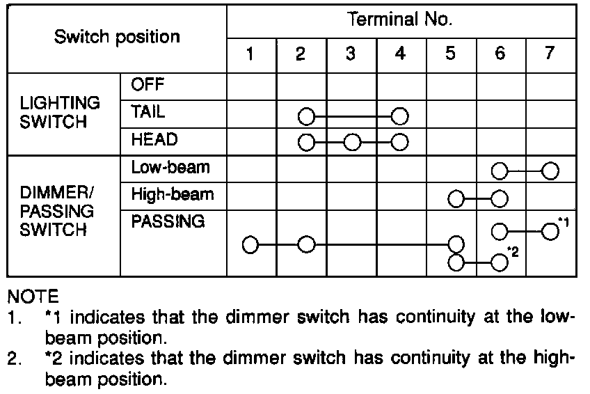 Column Switch Continuity Check Table: