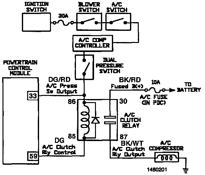 A/C Clutch Relay Circuit: