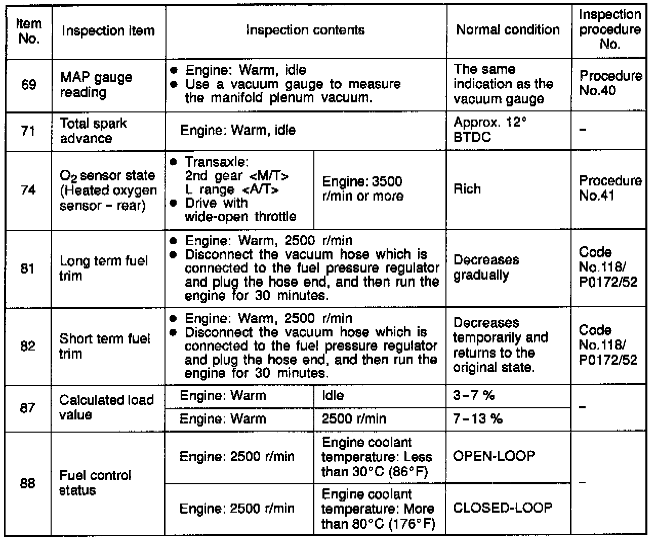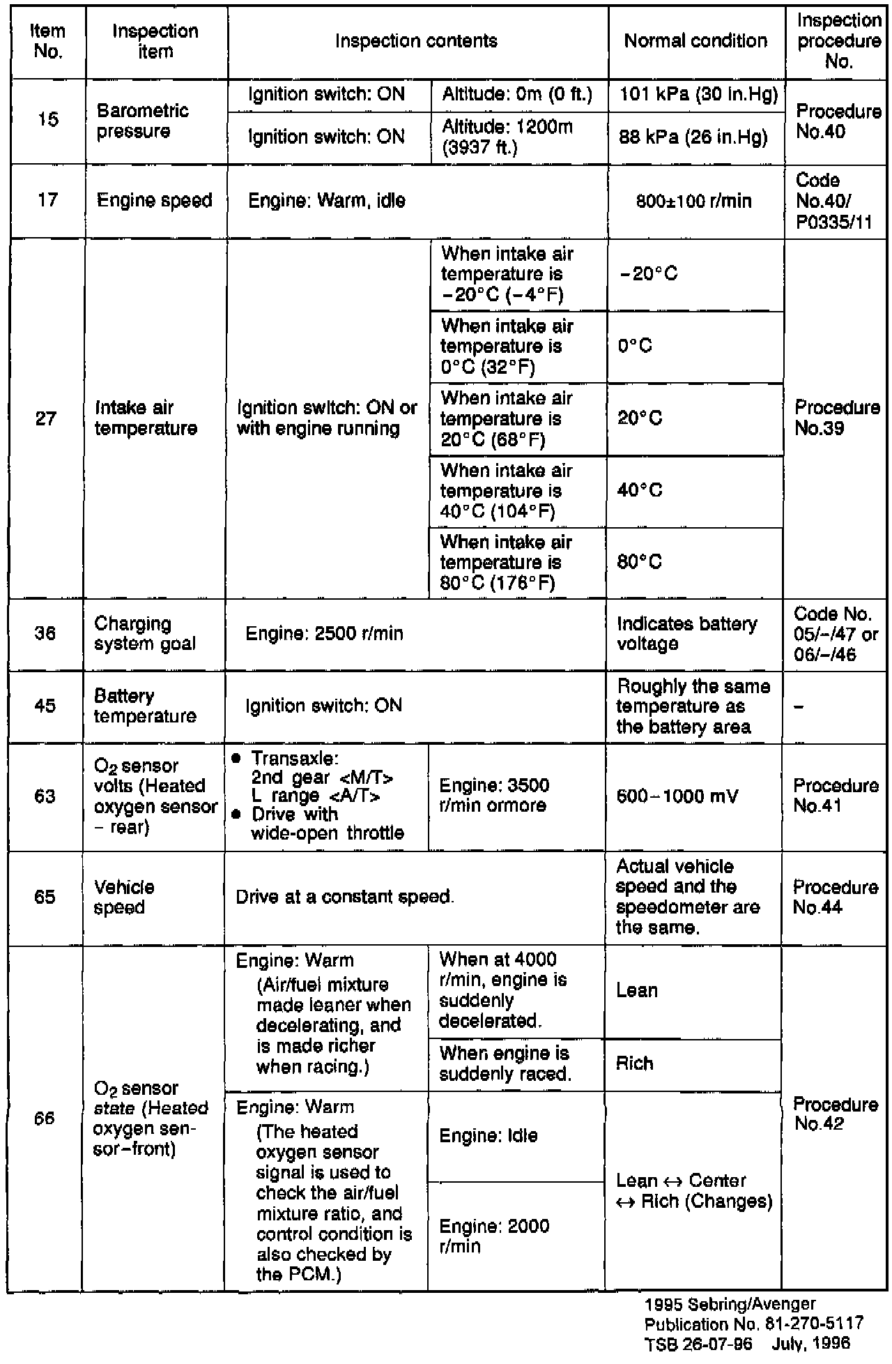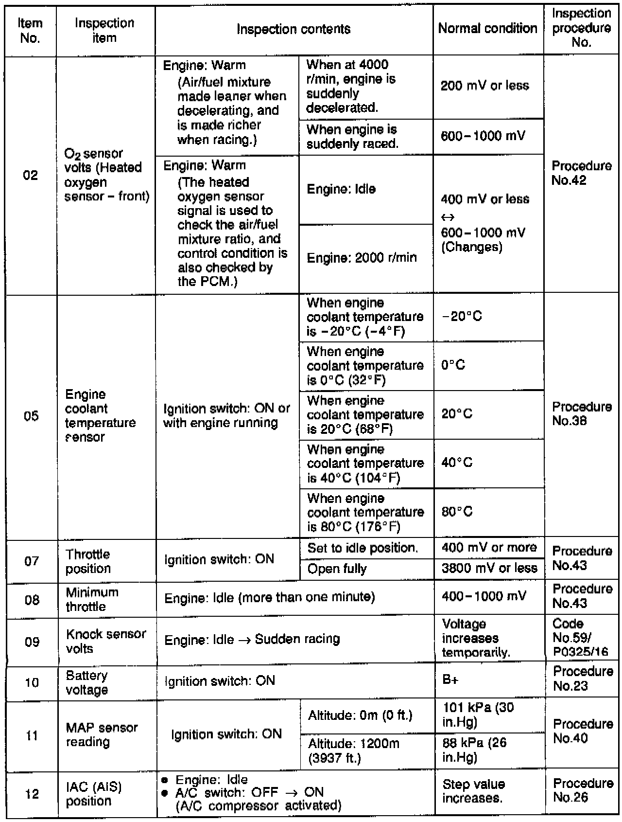 Sensor Read Tests Reference Table