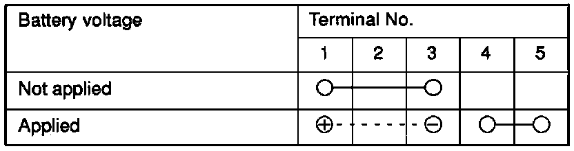 Starter Relay Continuity Check Table: