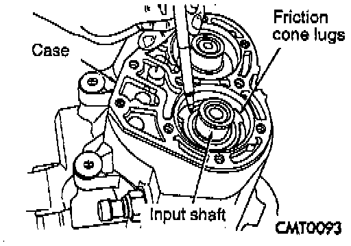 10. Line up reverse brake friction cone lug to the slots in the gear case. Verify reverse brake shim is in position.