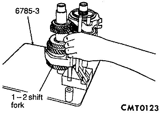 9. Install gear case half over pallet fixture. Line up shift finger over 3/4 lug.