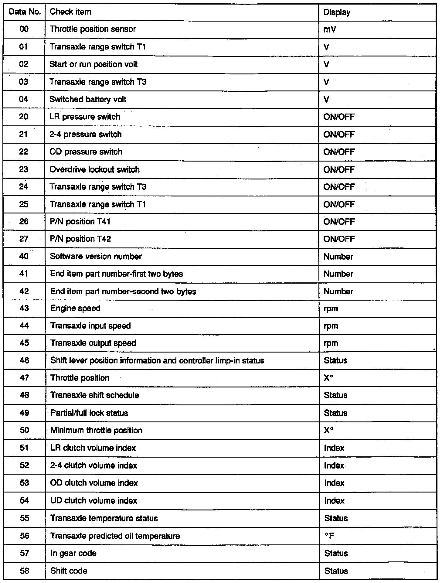 Service Data Reference Table