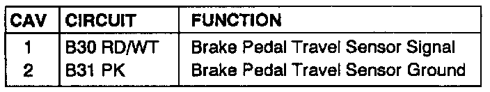 Pedal Travel Sensor Connector (LTCS only) Pin Out: