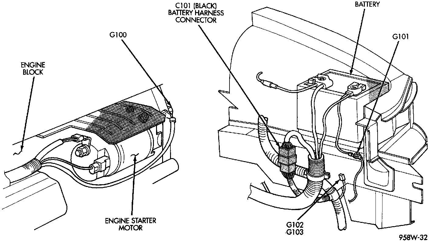 Battery And Starter Connections: