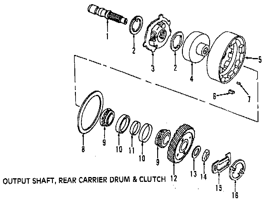 Output Shaft, Rear Carrier, Drum & Clutch:
