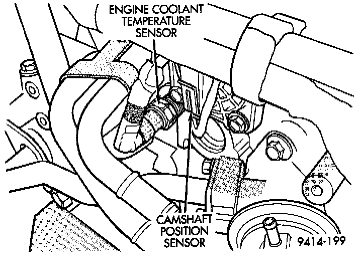 The coolant sensor threads into the rear of the cylinder head, next to the camshaft position sensor (Fig. 10).