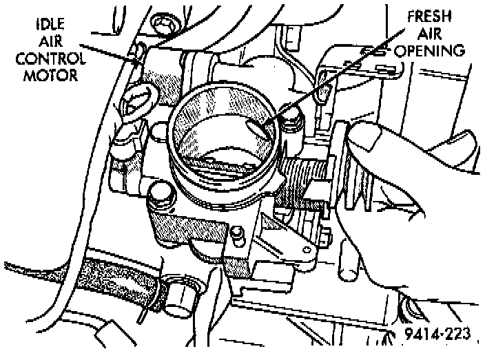 The Idle Air Control (IAC) motor is mounted on the throttle body. The PCM operates the idle air control motor (Fig. 23).
