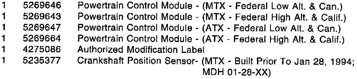 This bulletin involves replacing the Powertrain Control Module (PCM), and on manual transaxle equipped vehicles built prior to January 28, 1994, replacing the Crankshaft Position Sensor.