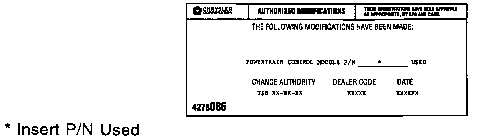 1. Remove the PCM as outlined on Page 8D - 1 in the 1995 Neon Service Manual Supplement (Publication No. 81-270-5025A), and replace it with the appropriate unit called out in "PARTS REQUIRED".