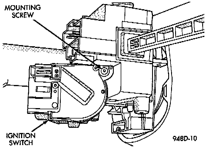 2. Carefully install the ignition switch. The switch will snap over the retaining tabs. Install mounting screw.