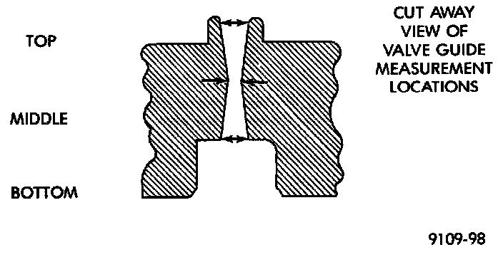 2. Using a small hole gauge and a micrometer, measure valve guides in 3 places top, middle and bottom. Replace guides if they are not within specification.