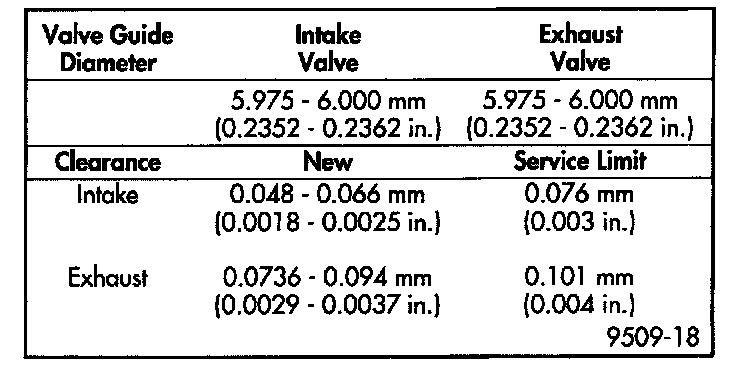 3. If valve stems are worn more than 0.05 mm (.002 inch.), replace valve.