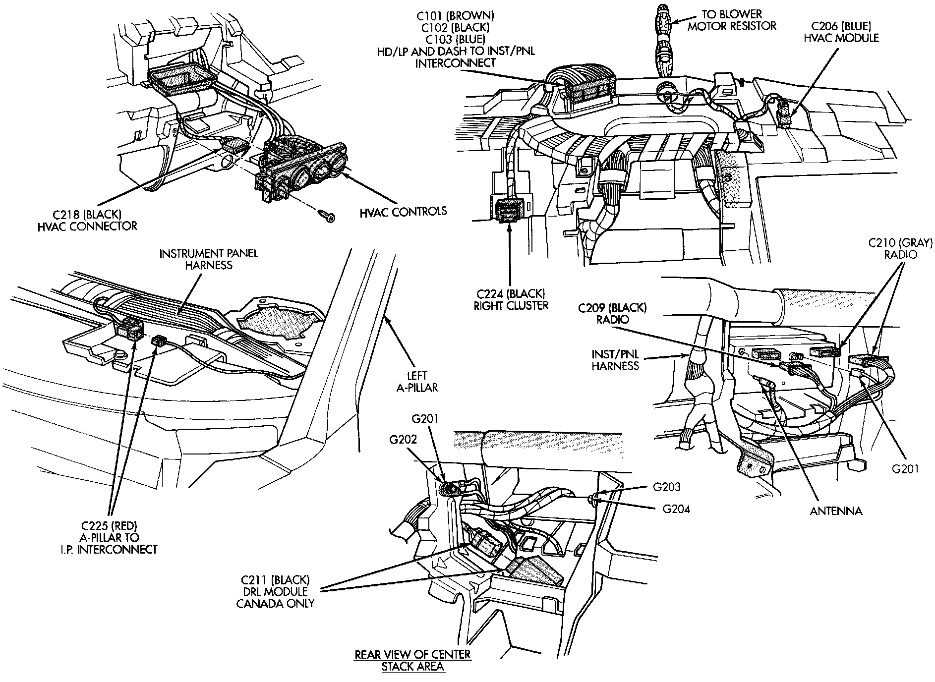 Fig.15 Instrument Panel Connections (Center Stack):